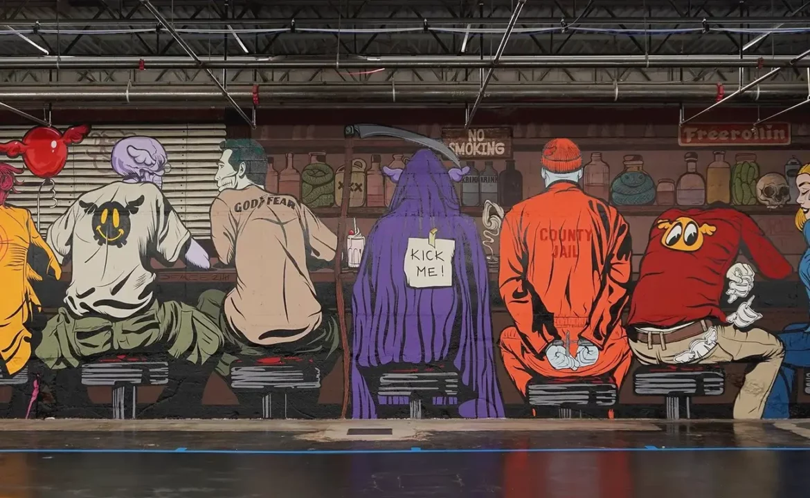 While his tools have expanded beyond vinyl stickers and stencil cutouts, the core of his message remains intact: art should interrupt, irritate, and interrogate. Collaborations with brands like Haig Club whisky and high-profile commissions such as the album cover for Blink-182’s California may hint at mainstream acceptance, but D*Face’s commentary has never softened. Instead, these projects serve as platforms to subvert from within, smuggling critique into spaces where it might otherwise be unwelcome. His ability to operate within both commercial and countercultural realms is a testament to his adaptability, but more importantly, to the strength of his artistic vision. Each piece, regardless of scale or setting, bears the same directive: look again, and question what you see.