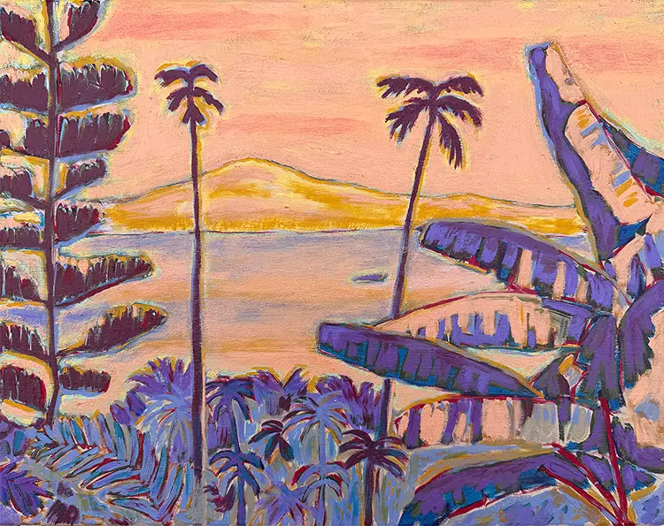 Jasper’s visual language captures fleeting, often poetic moments: sunlight casting warm patterns on tiled floors, the quiet silhouette of a palm tree at dusk, or the intimate glow of an interior lit by natural light. These moments are not incidental. They function as emotional anchors in his work, distilling larger experiences into sensory impressions that linger. By capturing these details, he invites viewers to linger within each scene, offering a space where personal reflection and imagination can unfold. His paintings are not about nostalgia, but about the emotional texture of memory, filtered through time and transformed into something new.