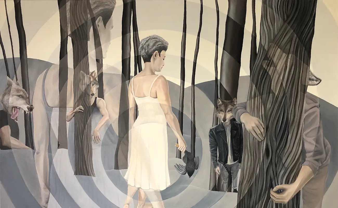 Ventura’s practice reaches its most poignant expression in works that blend personal symbolism with universal human emotion. Among these, Inner Conflict stands as a pivotal moment in her artistic journey. Created in December 2019, this oil painting self-portrait captures the sensation of being psychologically split—two versions of the same self torn by a decision that reshapes identity. In the image, a medieval saw penetrates her torso, not in violence but as a metaphorical instrument, bisecting her into mirrored bodies. The act of division becomes a visual metaphor for internal transformation, the kind brought about by confronting a life-altering decision. The piece speaks not only to the grief of what is left behind but also to the haunting persistence of that former self, one that never fully disappears.