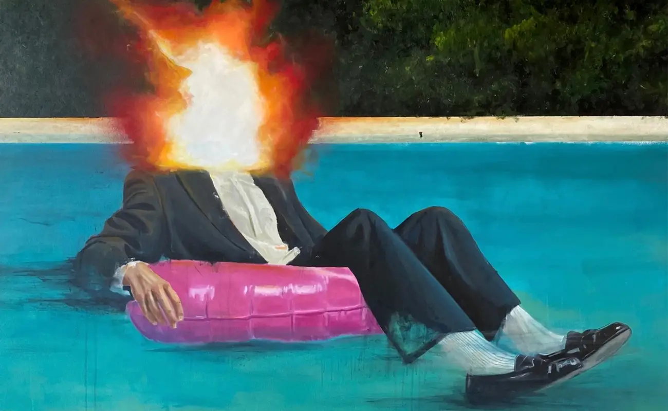 Recurring motifs like smiley faces and balloons inject a dose of playfulness into otherwise emotionally dense work. These icons, drawn from popular culture and digital shorthand, are recontextualized in his paintings to provoke deeper questions about authenticity and emotional transparency. A smiley face, often universally understood as a sign of happiness, becomes unsettling when used to replace a head, suggesting emotional displacement or enforced positivity. Similarly, his use of floral arrangements in place of faces brings nature into direct conflict with constructed identity, exploring how beauty can both conceal and reveal.