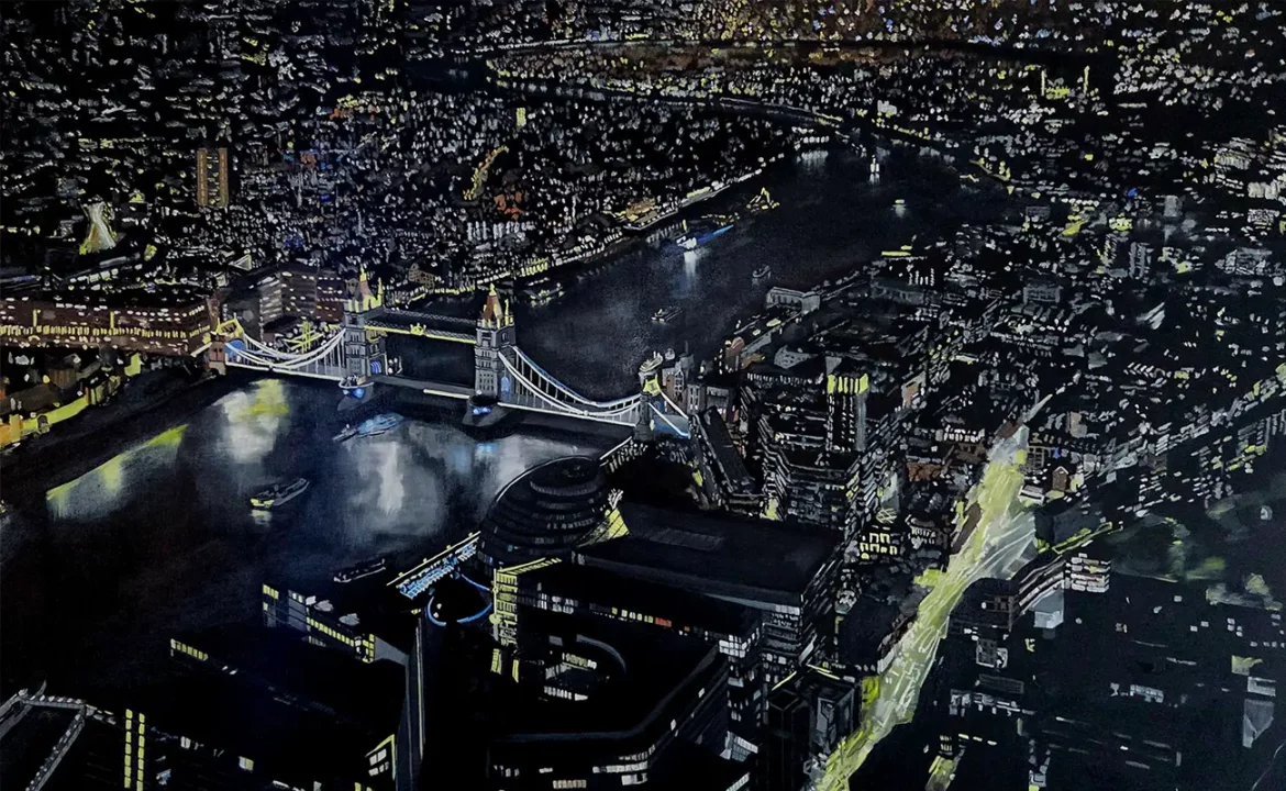 Crawford’s fascination with old architecture continues to serve as one of the emotional cores of his art. He is deeply captivated by how historical structures—mouldings, statues, facades—speak of a city’s memory, especially when juxtaposed against the sleek, imposing lines of modern buildings. This interplay between past and present fuels many of his cityscapes, where age and innovation share the same visual frame. To him, the built environment is more than backdrop; it is a living participant in the conversation between progress and identity, between decay and resilience.