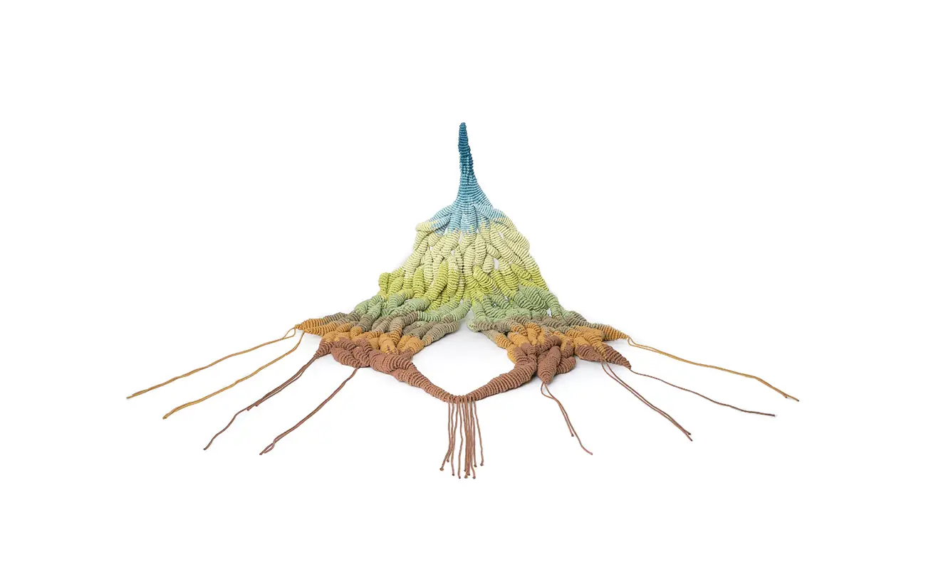 Textiles, for Reichartz, are more than materials; they are extensions of touch, memory, and presence. Her style is defined by an unwavering commitment to handwork, with organic shapes, layered textures, and biomorphic forms that echo the softness of the human body and the wildness of the forest. Employing tapestry weaving, macramé, basketry, and other techniques, she assembles works that are physically intimate yet expansive in meaning. Each piece is crafted slowly, with intentionality, allowing emotion and intuition to guide the process. Fragility and transformation remain constant themes, grounded in her lived experience and her reverence for the sacred within everyday gestures.