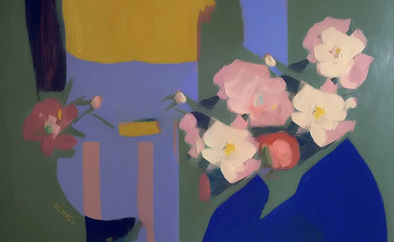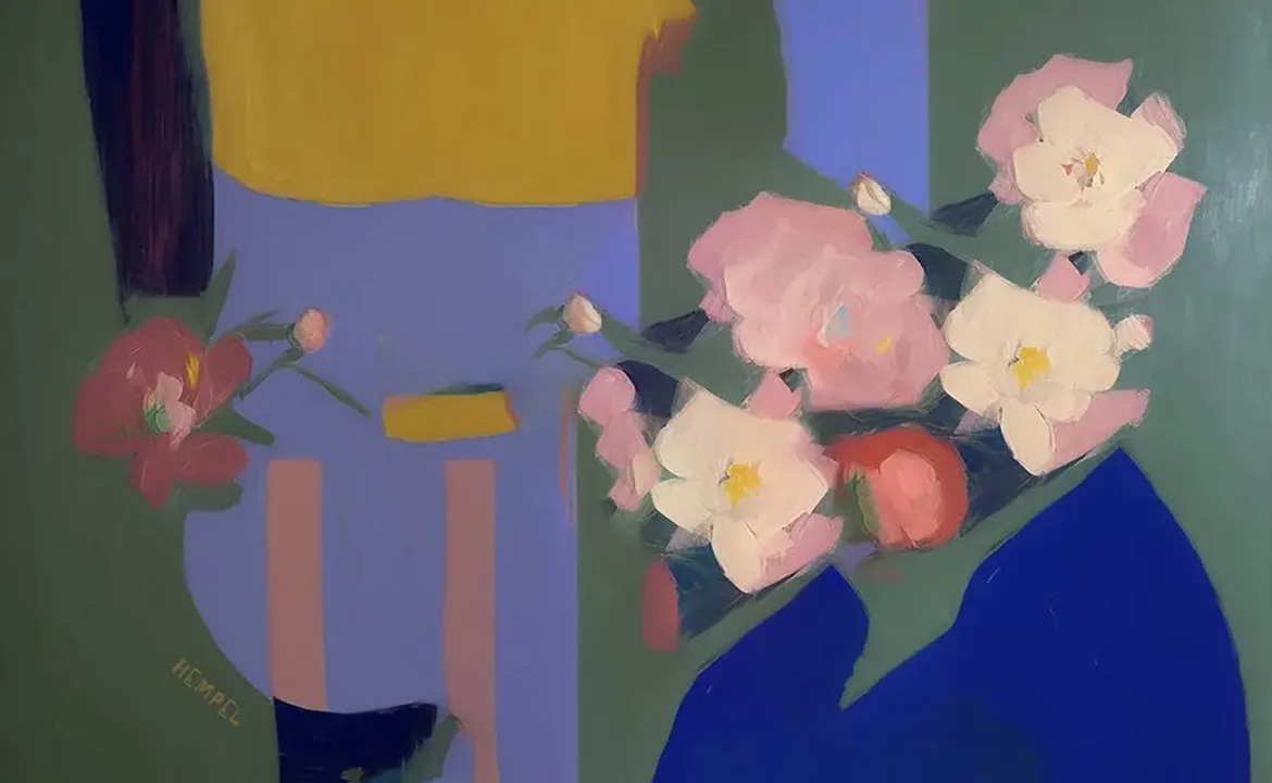Floral motifs appear frequently across her paintings, though they resist any literal interpretation. Rather than attempting to replicate nature, Hempel reimagines flowers as delicate emblems of impermanence and vitality. They gesture toward cycles of life, echoing themes of decay, rebirth, and the silent momentum of time. Her use of color and form transforms these elements into metaphors—gentle yet urgent reminders of life’s fleeting textures. In her work, nature does not exist as scenery but as memory, as pulse, as emotion. Through these metaphorical botanicals, she creates a quiet but deeply felt exploration of transformation and the small moments that often go unnoticed.