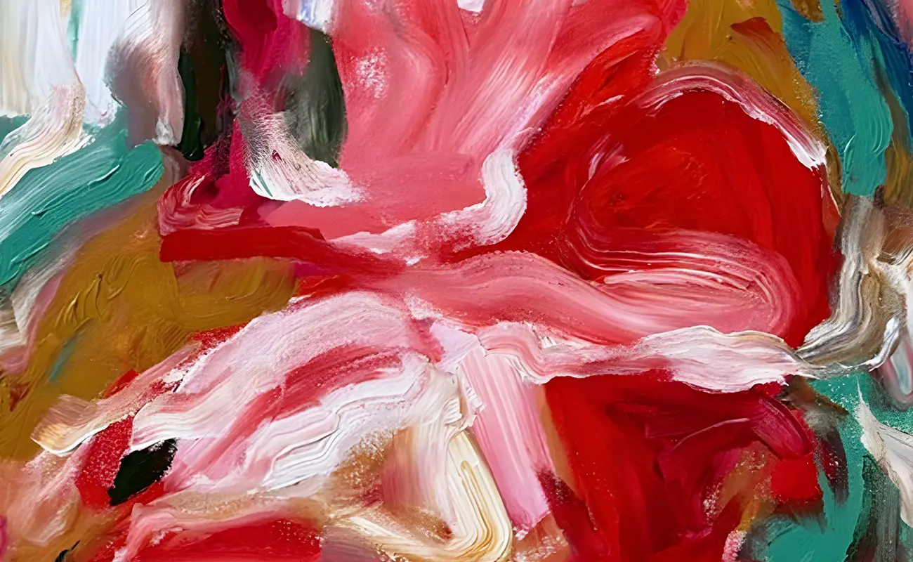 One of Feng’s most meaningful works, Interlace, embodies the visual and conceptual themes that animate her wider practice. At first glance, the canvas presents a surge of layered color, where abstraction and figuration momentarily cohere before dissolving. Upon closer inspection, traces of bodies and emotions become visible—entwined gestures that suggest both conflict and intimacy. Created with acrylic on canvas, the piece demonstrates her affinity for a medium that accommodates revision, spontaneity, and movement. Acrylic dries quickly, which aligns with her intuitive process and her resistance to perfection. It allows her to respond in real time, making every mark a reflection of an evolving state of mind.