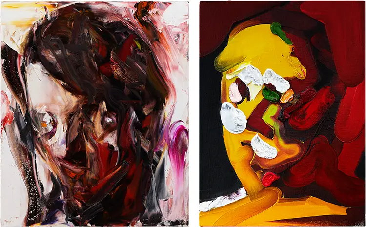 Beyond the canvas, Ida also works in sculpture, extending his exploration of impermanence into three-dimensional space. His bronze “heads” bear the same aggressive, spontaneous markings as his paintings, as if shaped by the impact of a palette knife rather than a sculptor’s chisel. These forms are not smooth or idealized; instead, they seem caught mid-gesture, frozen between emergence and collapse. The tension in these objects mirrors the uncertainty in his paintings, reinforcing the idea that identity and time are never static. In these sculptures, as in his canvases, Ida underscores the uneasy relationship between memory and matter, form and formlessness.